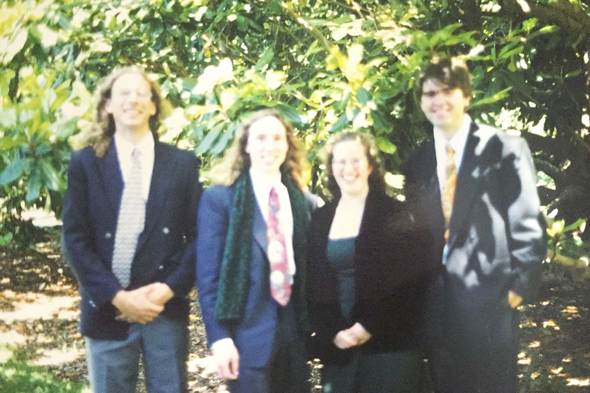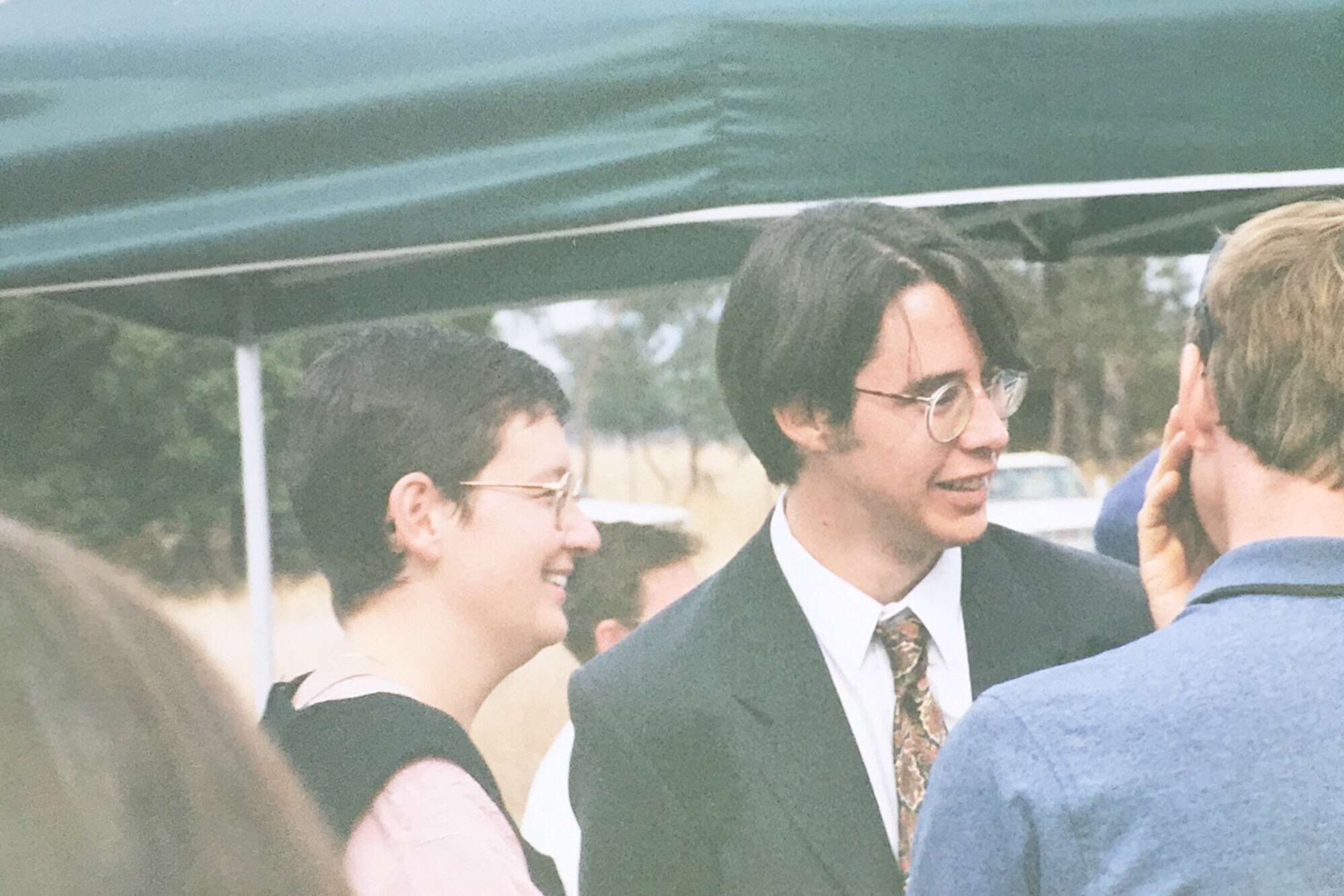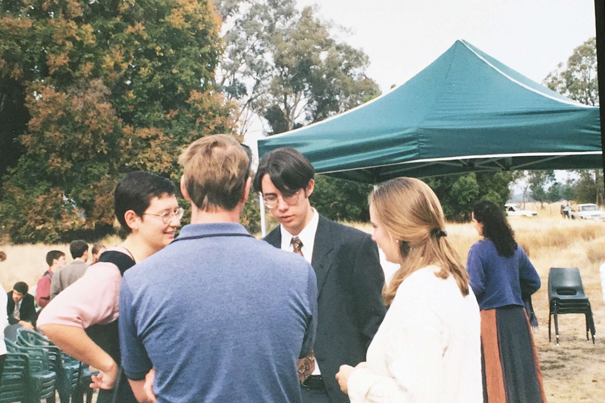 The 1990s. I went on a camping trip with Colette, Deb, and Jobber. (Deb saved Jobber from drowning, later kissed him, and broke up me.) My grandmother Doris died in 1992. (Bob and Molly died in 2000 and 2001.) I became an Australian citizen. I joined Deb on part of her epic walk to Queensland. I dated Jane. I had a party with lots of FOULies. Liz went to a family reunion. I dated Madeline. I went to Berkeley. I dated Sunny. I went to Paris, Barcelona, and hiking in the Pyrenees. Deb died. I went on a road trip and hiking with Saul. I went to Ben and Sarah's wedding. I graduated Berkeley and came back to Melbourne. Liz and John were into bellringing, and rang in the new year 2000.